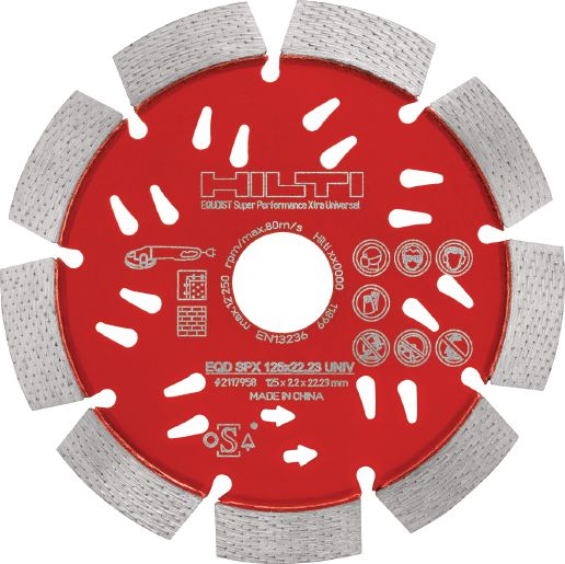 Rezanie, úprava veľkosti a tvaru širokej škály minerálnych stavebných materiálov, najmä tvrdého a vystuženého betónu, muriva a prírodného kameňa Rýchle rezanie aj v tvrdých a vystužených základných materiáloch Pre použitie vo všetkých ručných diamantových rezacích nástrojoch Hilti vrátane uhlových brúsok a plynových píl